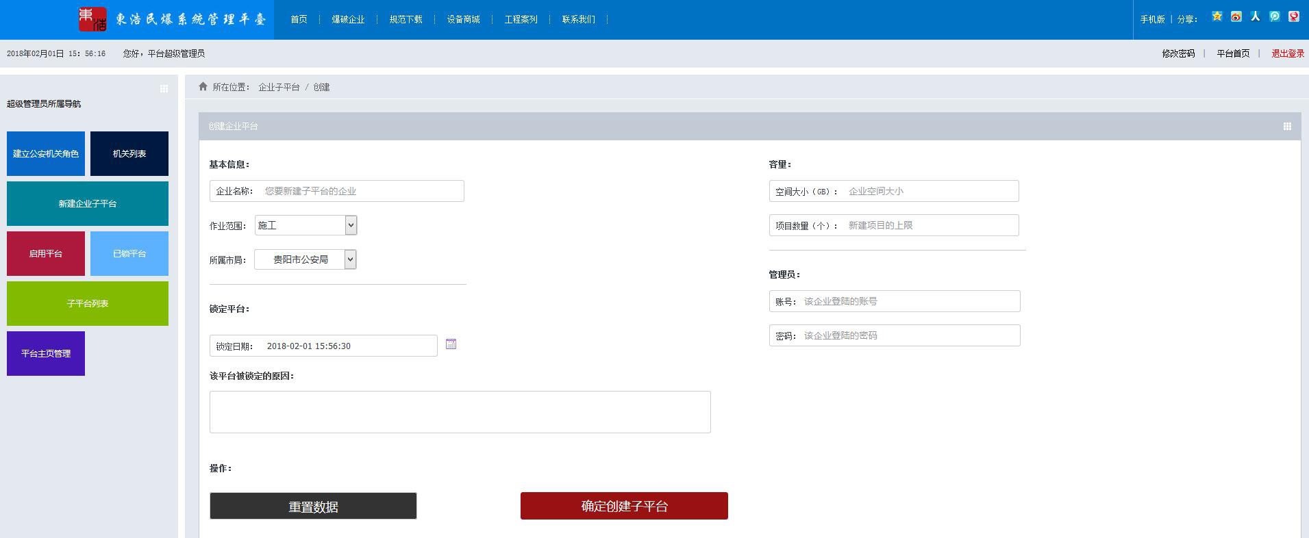 各大角色分布为:平台超级管理员、子平台系统管理员、公安机关用户、项目经理、现场管理人员、库管员、监理人员、公司员工、部门经理、财务